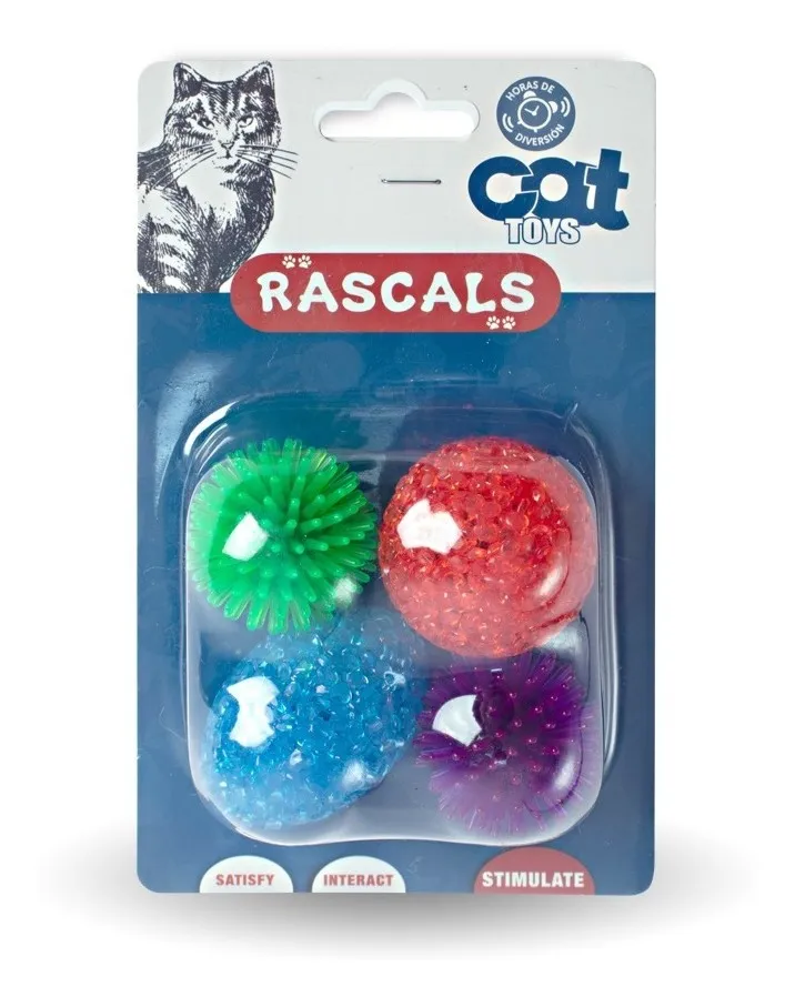 Pack de 4 Pelotas De Goma Para Gatos Rascals Surtidas.